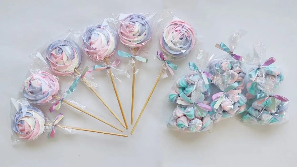 • 6 saquinhos lembrancinha. • 6 suspirulito grande. Nas cores do tema da sua festa.